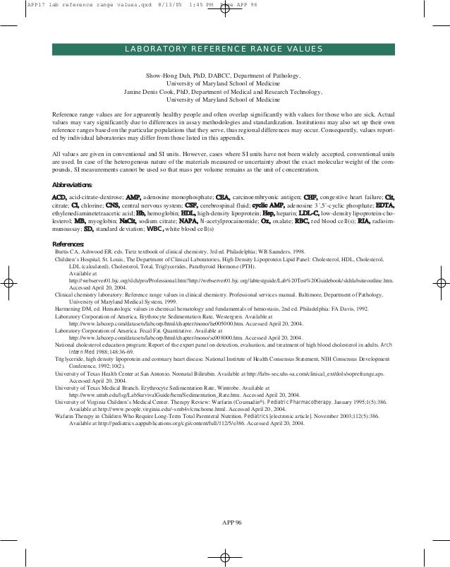 Laboratory Reference Range Values App17
